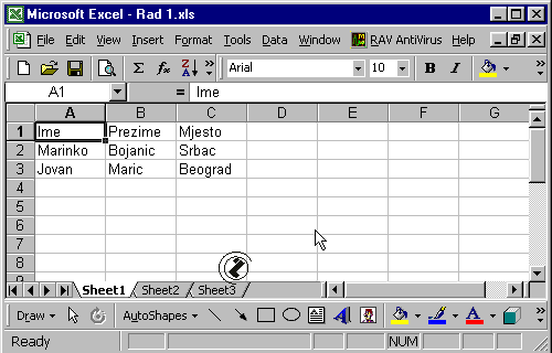 Premještanje sadržaja ćelije /CUT-MOVE CELL/, steps: