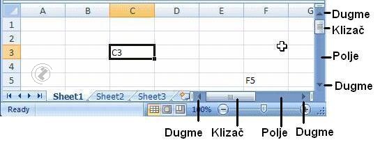 abc MICROSOFT EXCEL 2010 - Parts of EXCELwindow If all data from one WORKSHEET cant be displayed on one screen Scroll bar will appear. It could be HORIZONTAL Scroll bar or VERTICAL Scroll bar. User can choose a part of a document with scroll bar, button or field of scroll bar.( Look at the image 1.)