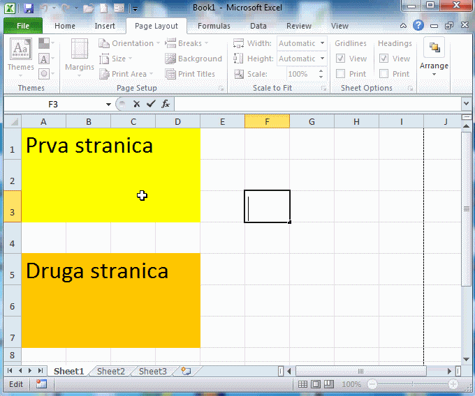 User can add new page /PAGE BREAK/. On screen, it is seen in shape of dashed line for ROW, and on printer it is a sign for break line.