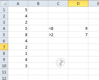 EXCEL has a posibility to pick out based on the relational operator. Counting bigger (e.g. 2) and smaller (e.g. 8) is presented