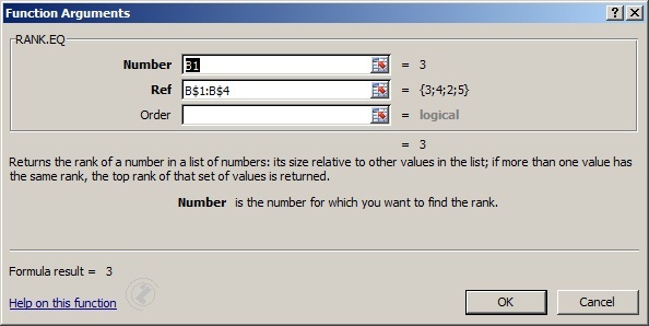 - Select RANK function.