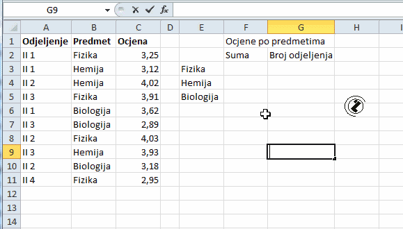 Students of the classes accomplished certain goals in each subject. Calculate the sum by each subject and look at the following animation, and for the number of the class (look at the animation >>) and for Averagee (look at the animation