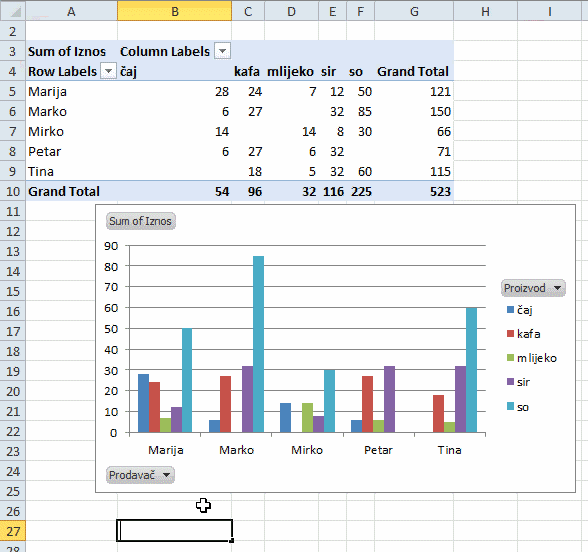 Created diagram in Pivot table is on picture 1 and removed elements on picture 2 (only are shown prodavači muškarci).