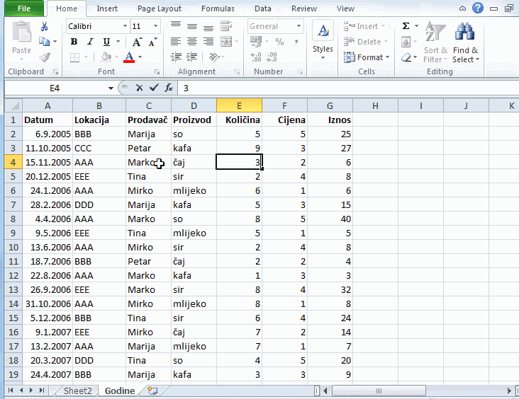 For data crate oivot table :proizvodi,rows Predavavi and ostvareni iznosi.Created pivot table just like on the picture