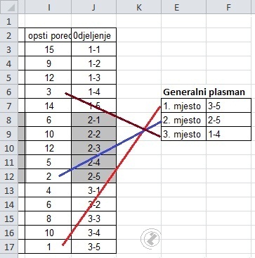 VLOOKUP - HLOOKUP For acompliched number of pionts write firstranked classes seperatly for points earned members rite three firstranked classes from all classes .VLOOKUP function acount for reserched values in range and write content next row choosen collum. first parametrs function values witch is needed (in this case 1)then range in witch is needed value,third parametar collum is used by doing write next row (in this case second collum) and forth parametars is needed correct value or less then added (in this case correct value from those parametars 0),for asked first ranked classes from all classes formula is: for second ranked clesses for third ranked class is: