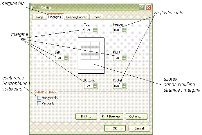 abc MICROSOFT EXCEL 2010 - Page setup Opening margins dialog box from ribbon