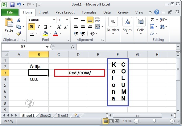 ROW Horizontal space from left to right is a row. Number on the left is used to mark the row. Height and wight of columns/rows can be changed. N o t e: Column/row can be inserted and deleted.