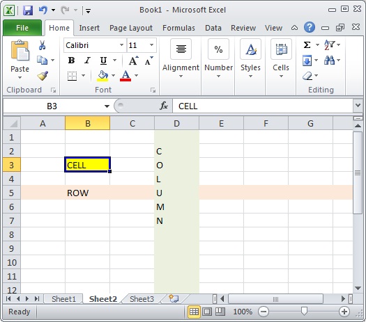 The cell in the upperleft corner is labeled A1(column A,row 1)