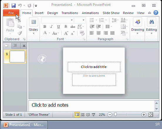 - Put the mouse pointer on the PowerPoint logo (in the upper left corner of PowerPoint window).