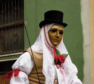 Drevne tradicije na Sardiniji ponovo oživljuju u brojim proslavama i festivalima. Jedan od najvažnijih jeste Sartiglia, uzbudljiv turnir koji se održava u Oristanu između karnevalske nedelje i pokladnog utorka. Sartigliu obilježavaju figure cumpunidora, tj. Maskiranih jahača. Cumpunidori predstavlja poganskog kralja žetve i godišnjih doba koji osigurava sveopšti sklad. Odabire se početkom februara za Candelore, i mjesecima se pomno priprema za zadaću koju mora izvršiti na turniru: dok galopira na konju, cumpunidori mačem mora ubosti u sredinu obješene metalne zvijezde. Njegov uspjeh ili poraz oduvijek je bio od velike važnosti jer pretkazuje dobru ili lošu sreću u mjesecima koji slijede. U vrijeem karnevala maskirani ratari i pastiri plešu u povorci mamuthona u Mamuiadi u pokrajini Nuoro. Učesnici koji na leđima nose golema kravlja zvona dok im oko vrata vise manja zvona predstavljaju ljude zvijeri. Ovo je čest element u mnogim evropskim proslavama koje se bave prikazom „divljeg šumskog čovjeka“. Još jedna odlika sardskog folklora jeste kružni ples u kojem učesnici plešu u krugu oko muzičara. Koriste se gajde ili tamburine. Sardska narodna muzika služi se a capella napjevom u kojem se istovremen koriste četiri ljestvice. |