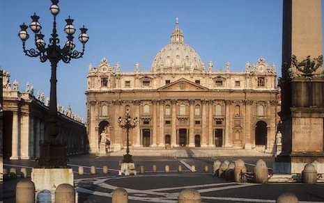 The central church of Roman Catholicism, Saint Peters Basilica in the Vatican City (State of the Vatican City) stands on the site where Saint Peter is believed to have been buried. Built in the 16th and 17th centuries to replace an earlier church, it is the largest house of worship in the world, with space to accommodate 50,000 people. Its original overall outline was that of a Greek cross, but it is now shaped like a Latin cross. Saint Peters has been used for papal ceremonies since 1870.