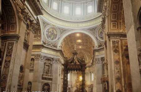 The construction of Saint Peters Basilica in Rome began in 1506 and spanned more than a century. Many popes sponsored its construction, and many architects contributed to its design. Among the latter was Michelangelo, chief architect from 1546 until his death 18 years later. Saint Peters is filled with artistic treasures and is called the "Church of the Popes".