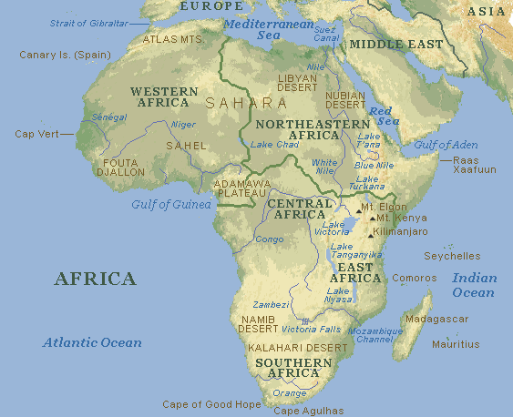 Kontinent juzno od Evrope i jugozapadno od Azije, izmedju Atlantskog i Indijskog