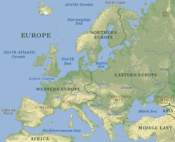 U sredisnjem dijelu kontinenta nalaze se Alpi - planinski vijenac sa najvisim vrhom