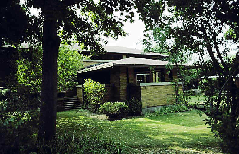 Izgled jednog od prvih Wrightovih stambenih obekata podignut 1898. u Chicagu - Street Seene Oak Park - zvani Cheny house, koji se vec svojom polozenoscu po terenu, vodoravnim protezanjem i niskim krovom isturenim preko lica fasade izaziva osjecaj novih proporcija odnosno covecije razmere. Donji deo zgrade je sagradjen od neozbukanih opeka.