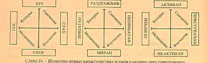Šematski prikaz karakteristika četiri klasična tipa temperamenta