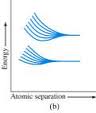 kada se približe dva atoma,stanje 1s se cijepa u dva bliska energijska podnivoa,a isto se dešava i sa stanjem 2s,kada se približi 6 atoma stanja se cijepaju u više energijskih podnivoa.