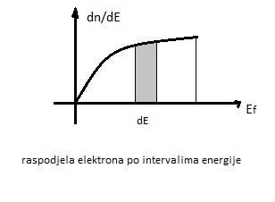 Energija najvišeg nivoa je energija Fermi-jevog nivoa,elektroni su rapoređeni po intervalu energije dE.