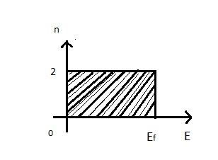 Slobodni elektroni u potencijalnoj jami (pozitivni joni) metala su raspoređeni po energijskim nivoima,počev od osnovnog energijskog nivoa,tako da se u jednom energijskom nivou nalaze najviše dva elektrona koji se a razlikuju po spinu.Energijski nivoi pojedinačnih elektrona su veoma bliski.