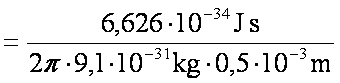 Zadatak 2 : Elektron pri gibanju kroz maglenu komoru ostavlja trag širine 0,5 mm. Kolika je najmanja neodređenost njegove brzine? Masa elektrona je 9,1×10-11 kg. Rješenje: Dx = 0,5 mm =0,5×10-3 m m = 9,1×10-11 kg