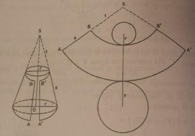 M = πr(s+t) – πr1 t= πrs + π(r-r1)t = πrs + π(r-r1)r1s/(r-r1)