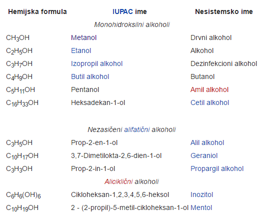 vrste alkhohola