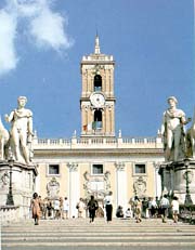 Sveti Petar ; U cast treceg osnivaca grada Rima, apostola Petrasazidana nad njegovim grobom nastala je u XVI veku, najveca i najkrasnija crkva na svetu. Duzina crkve je 124, crkveni prostorzauzima povrsinu 15160m2. | Trg Kapitola u Rimu, sagradjen prema Mikelandjelovim planovima.U dnu Senatorska palata; levo Palaco Nuovo;desno Palata Konzervatora. | |