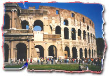 Najpoznatija gradjevina Rima iz carskih vremena, Flavijev amfiteatar u blizini Foruma, poznat je oko hiljadu godina nazivom "Koloseum". Ime potice od orijaskog kipa Neronova koji je stajao u blizini goleme gradjevine.Masovne borbe ratne scene, citave pomorske bitke i javna mucenja i smaknuca desetak hiljada hriscana-sve je to bilo prikazivano za zabavu narodnih masa u Koloseumu. | |