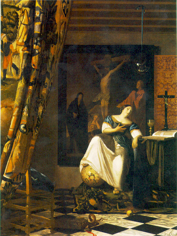Dama kod Virdzinala (oko 1670.) Nacionalna galerija,London Amor na slici na zidu drzi kartu;to je simbol slucaja koji upravlja ljubavlju. |