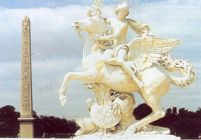 (Trg Konkord) Smje{ten na ulazu u Tiljeri, statua Merkura na konju je otisak skulpture Kojzevoksa (1640-1720) koja se ~uva u Luvru. Poklonjen 1831. godine kralju Luju Filipu obeliks iz Luksora na sredini trga je jo{ od 1836, datira iz XIII vijeka p.n.e. i poti~e iz hrama Ramzesa II iz Tebe. |