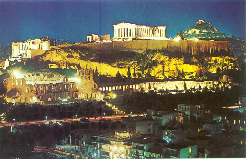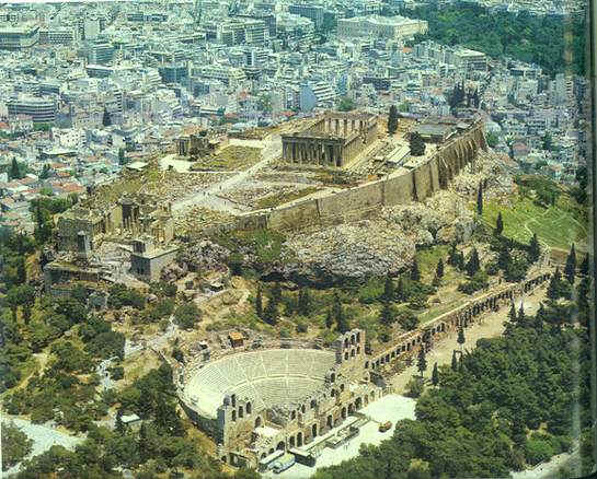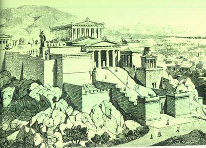 Svako ,i sve u Atini,u neraskidivoj je vezi sa Akropoljem,156m visokom liticom od krecnjaka,koja krunise grad. Jasno vidljivi iz bilo kojeg dela Atine,savrseno uravnotezeni i bljestavo beli stubovi Partenona,ponosno se uzdizu naspram plavog neba u pozadini,kao besmrtni simbol ljudskog duha i genijalnosti.Arheoloska iskopavanja koja su izvedena na padinama i ravnim terenima Akropoljskog uzvisenja,dokazala su da je ova velika isveta litica prvi put nastanjena u neolitskom peridu ,pre nekih 6000 godina.Prvo Pelasgi,a zatim i Jonjani,nastanili su se po pecinama,uglavnom duz severne strane.Ukoliko bi osetili opasnost, spas bi potrazili na visim delovima litice.Prirodni nagib litice privlacio je plemena koja su se smenjivala,nastanjujuci njene padine,a tokom vekova,mala naselja su se prosirivala i na susedne oblasti oko brda Pniks,Agore i Keramikosa.Nicim ometano doseljavanje,do sredine 6.veka p.n.e.,doprinelo je prosirivanju grad.
