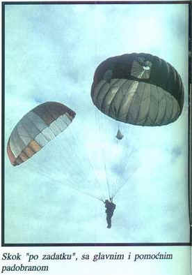 Padobranska obuka deli se na osnovnu ,visu i instruktorsku.U toku osnovne obuke izvodi se sedam skokova,od kojih dva nocna,a skace se sa desantnim padobranima"Kluz" PD-08-3U(okrugla kupola).Desantnitno skokovi skacu se na prinudno dejstvo sa visine od 400 do 800m ,a tzv."skokovi sa stabilizacijom" sa 2000 do 3000 m.