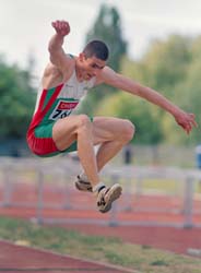 Udalj se skace iz zaleta dugog 25-40 m . Zalet je ubrzanje u kome treba postici maksimalnu brzinu nekoliko poslednjih metara pred odrazom. Odrazna noga se postavlja cijelim stopalom na odrazno mjesto, a odraz se vrši naprijed i gore, brzim opružanjem odrazne noge sa istovremenim izmahom naprijed-gore savijene zamašne noge. Poslije odraza odrazna noga se odnosi do zamašne, obe se privuku zgrcene u koljenima na grudi (zgrcena tehnika) ili se zamašna noga opušta dole preme odraznoj, pa obe savijaju u koljenima i odvode nazad uz uvinuce u krstima(skok sa uvinucem). Pri kraju leta noge se energicno izbacuju naprijed, a ruke odvode nazad. U momentu doskoka ruke se snažno izbacuju naprijed. |