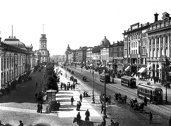 Ako uEvropi svi putevi vode u Rim onda u Petrogradu svi putevi vode u aveniju Nevski.Ova 45 km duga avenija buja od zivota od ranog jutra do kasne veceri.Sve se tu moze naci-najbolji hoteli,mnostvo restorana i kafea,nekoliko bioskopa,prodavnica,pozorista i koncertnih hala.Nevski predstavlja Petrograd u malom-tu se moze vidjeti najbolje i najvrojednije u ovom gradu.Ulice su pune kontrasta-jedni do drugih stoje prodavaci kicastih suvenira i umetnici i muzicari.Ovdje su samo dvije gradjevine izgradjene u XX veku-zgrada Vazduhoplovstva i Dom Knigi.Na Nevskom se nalaze arhitektonska cuda poput Kazanski katedrale i Stroganove palate. | |