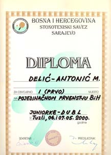 STONI TENIS - 1. mjesto u Crnoj Gori (kadetkinje); - 2. mjesto na "Istanbul open"-u (juniorke); - 3. mjesto na " Istanbul open"-u (seniorke); - 3. mjesto u Zagrebu međunarodni turnir Antun Tova Stipančić (kadetkinje); - 2. mjesto BIH (juniorke)...