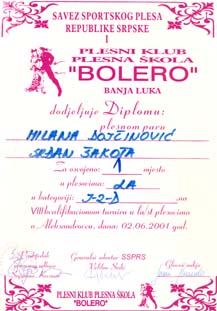 - 1.mjesto RS u latinoameričkim plesovima(juniori);