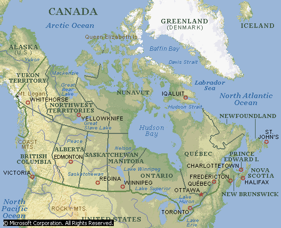 Postoji 6 prirodnih regija u Kanadi:Apalačke planine,područje Velikih Jezera i rijeke Sv.Lorenca, Kordiljera,Arktičkog arhipelaga, Kanadski štit i Unutrašnje ravnice. |