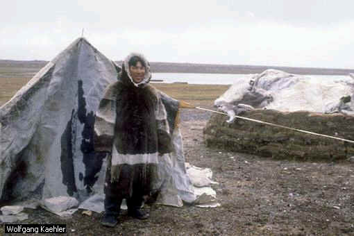 Najveći dio stanovništva čine Britanci i Francuzi, tako da su engleski i francuski zvanični jezici u Kanadi. Najveći gradovi u Kanadi su: Toronto, Otava, Montreal, Vankuver, Edmonton, Kalgari, Vinipeg, Hamilton, London, Kičner... Imigranti čine oko 16% ukupnog stanovništva Kanade i imigracija je u suštini osnovni pokretač razvitka od početka kolonijalne ere. | ![]() Inuitski kamp |