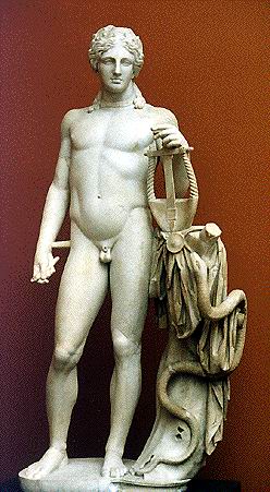(Grč. Apollon, lat. Apollo - sin Zevsa i titanke Lete, bog svetla i sunca, čuvar života i poretka, nepogrešiv strelac i vrač)Rodio se na ostrvu Delosu, gde se njegova majka bila sklonila bežeći pred Pitonom, strašnom zmijom s glavom zmaja, kojom ju je progonila Zevsova ljubomorna žena Hera. Delos je tada bilo ploveće ostrvo koje se ljuljalo na morskim talasima i zbog toga nije bio posebno sigurno utočište. Progonjena Leta nije imala drugog izbora jer je Hera bacila na nju kletvu da ne nađe ni komadić čvrste zemlje gde bi mogla da rodi Zevsovu decu. Čim je stala na tlo ostrva, dogodilo se čudo: iz morskih dubina izronile su dve stene, od kojih je jedna zaustavila kretanje ostrva, a druga preprečila put Pitonu. Leta je zatim na gori Kint rodila blizance - kćer Artemidu i sina Apolona.