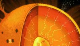 У језгру Сунца се одвијају термонуклеарне реакције, при којима се у свакој секунди ослобађа 4x1026Ј енергије (а то је 10 000 пута више енергије него што је човјечанство произвело у цијелој својој историји). Ова реакција се одвија на темпертури од 15.6 милиона К и при притиску од 1016 Paskala. У таквим условима плин се налази у облику плазме. Овај процес који се одвија унутар Сунца назива се фузија. При њему се спајају два атома водоника и један атом хелијума, а затим долази до ослобађања енергије у облику гама- зрака. Међутим само двомилијардити дио ослобођене енергије доспије на нашу планету. Ова реакција се одвија стабилно због веома великог гравитационог притиска који је присутан на Сунцу. Истраживања су показала да ће Сунце бити у стању да зрачи топлоту у наредних 5 милиона година. |