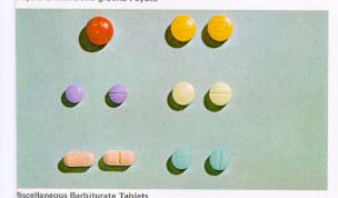 Barbiturati spadaju u grupu umirujućih sredstava- psihodepresora, i kao takvi služe, pored ublažavanja i sprečavanja raznih bolova, za liječenje epilepsije, kao i za anesteziju pri medicinskim intervenicjama. Te laboratorijski pripravljene droge ponekad propisuju i doktori kao lijek protiv nesanice i tjeskobe, kao "tablete za spavanje" ili smirivanje. Propisuju se i ljudima koji su na granici snaga zato što ih muče prevelike brige i tjeskobe, i što su stalno na rubu živaca. Uzeti u velikim dozama mogu dovesti do veselog raspoloženja ( euforije), što liči na stanje alkoholisanosti. Kombinovani sa alkoholom, heroinom i amfetaminom, mogu dovesti do teškog trovanja pa i do smrti. Apstinencijska kriza je vrlo žestoka, ponekad čak i smrtonosna. Zbog toga je strogo kontrolisano propisivanje barbiturata ( izdaju se u određenim slučajevima na recept u duplikatu, uz zavođenje u posebne knjige narkotika). Danas se barbiturati propisuju mnogo rjeđe, a njihova se zdravstvena upotreba pažljivo prati. To je zbog mnogih problema u prošlosti, nastalih zbog njihove upotrebe, te zbog navikavanja te nastajanja psihičke i fizičke ovisnosti. Kod hronične upotrebe barbiturata javlja se, pored ostalog, agresivnost i poremećaj koordinacije. Slično barbituratima djeluju metakvalon ( stvara psihičku i fizičku zavisnost), glutetilid - djeluje slično heroinu, razvija fizičku zavisnost...