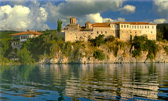 Manastir Sv.Naum izgrađen je na stijeni iznad jezera ,odakle se