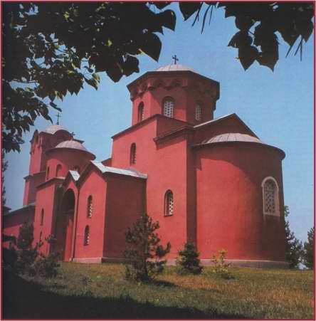 Žiča, zadužbina Stefana Prvovjenčanog i Svetog Save Crkva Hristovog Vaznesenja (1127.) Žiča je obojena u crveno (počiva na krvi mučenika)