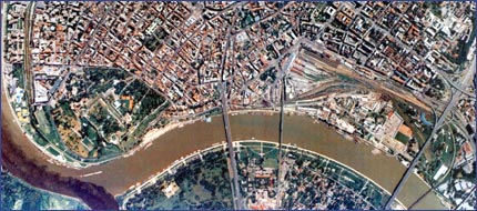 Save, ispod lesne zaravni (Bežanijska kosa), je Novi Beograd, a na desnoj obali
