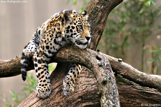 Kao i leopard,jaguar ima najkraće prednje noge,od svih velikih mačaka.Ova kompaktna forma mu omogućava život u krošnjama drveća,za razliku od geoparda,koji je napravljen za brzinu.