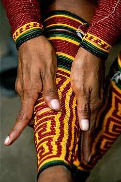 nizova crvenih, crnih i žutih perla koje nose oko nogu i ruku, te ot oloa,