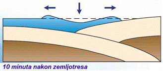 morskog dna u zoni epicentra, kao posljedicu stvara nagli skok nivoa vode iznad