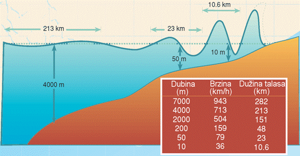 talas dopre do plitkih djelova, nastaje cunami efekat koji se manifestuje naglim
