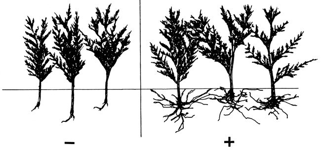 Tako se indol-buterna kiselina i naftil-sirćetna kiselina koriste za oživljavanje raznica kod onih biljnih vrsta (cvijeća, voćaka ili šumskog drveća) koje spontano ne formiraju adventivne korijenove.