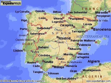 Najstariji dio Spanije, 600-800m visoka visoravan Meseta, gradjena je od pretkambrijskog i paleozojskog kristalicnog kamenja i starih kamenaca. Na sjeveru je okruzena mladim nabranim Kantabrijskim gorjem i Pirinejima(Pico de Aneto, 3404m), a na jugu Andaluzijskim gorjem ili Betijskim Kordiljerima, koji su gradjeni od mezozojskih itercijarnih naslaga. Andaluzijsko gorje sastoji se od nekoliko masiva, koji se pruzaju paralelno s obalom Sredozemnog mora;centralni dio Sierra Nevada s najvisim vrhom Spanije(Mulhacu, 3481m). Izmedju juznog ruba Mesete odnosno Sierra Morene i Andaluzijskog gorja nalazi se velika Andaluzijska tektonska depresija. Na sjeveroistocnom rubu Mesete pruza se Ibersko gorje, gradjeno od krednih i jurskih naslaga, a izmedju Iberskog gorja Pirineja i Kantabrijskog gorja depresija rijeke Ebro(Hragonska kotlina). S visoravni Mesete izdizu se planinski masivi Sierra de Gata , Sierra de Gredos i Sierra de Guadarrama, koji su nastali rasjedanjem u tercijaru. Obala je uglavnom strma i nerazudjena;dobro je razudjena samo obala Galicije i sjeverozapadne Spanije sa mnostvom zaljeva karakteristicnog oblika.